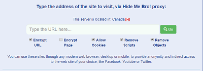 HideMeBro holds many special things for you. Those things include the lightning fast streaming and some other proxy sites which are featured by them. Hence, the users who are not satisfied with HideMeBro can visit the alternative features site. Their server is located in Canada, and it gives the user a fantastic speed just like they get in the normal connection.