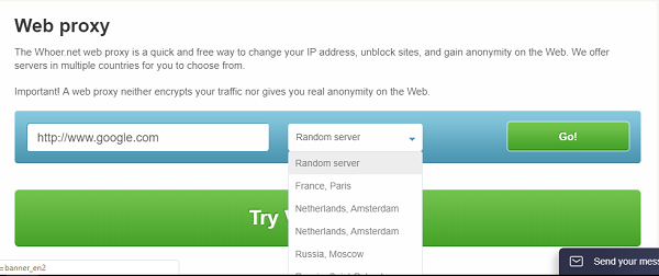 Whoer is a service where anyone can access blocked resources and websites for free. Unfortunately, because it’s a viral site, most network admins might have blocked it from accessing. But, I highly recommend you to check it because the server speed is very awesome — no limits, multiple servers available to the user.